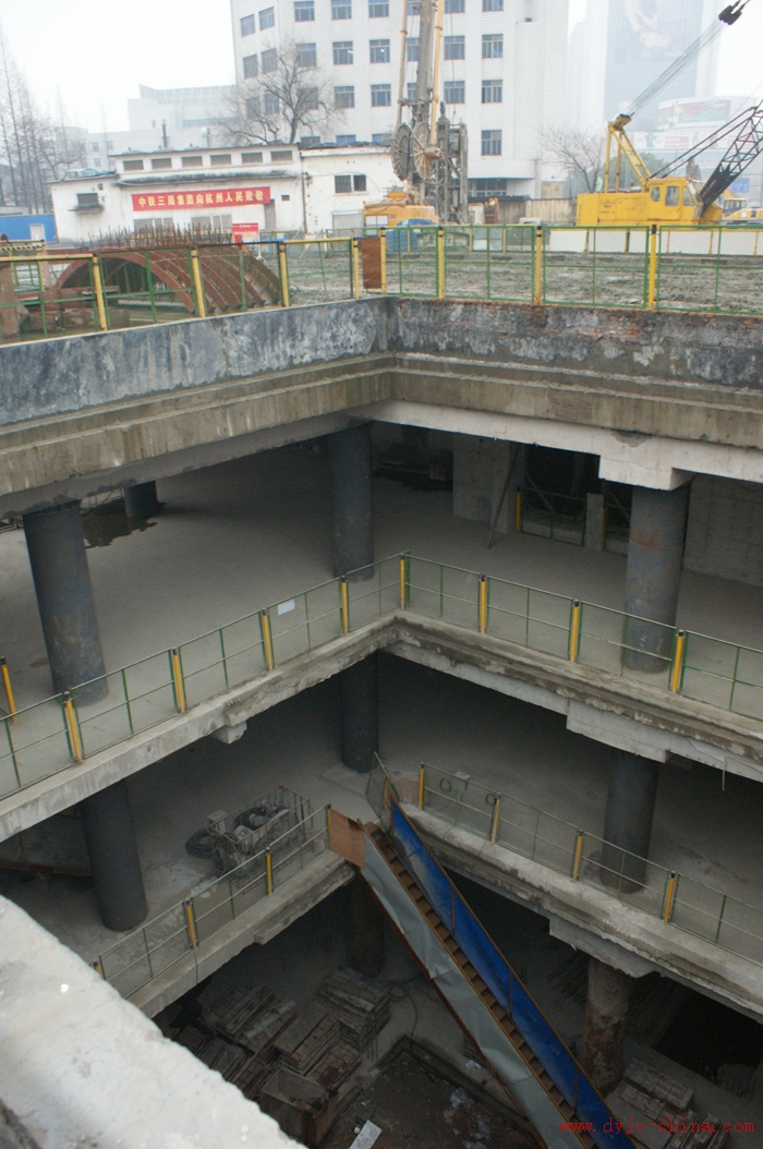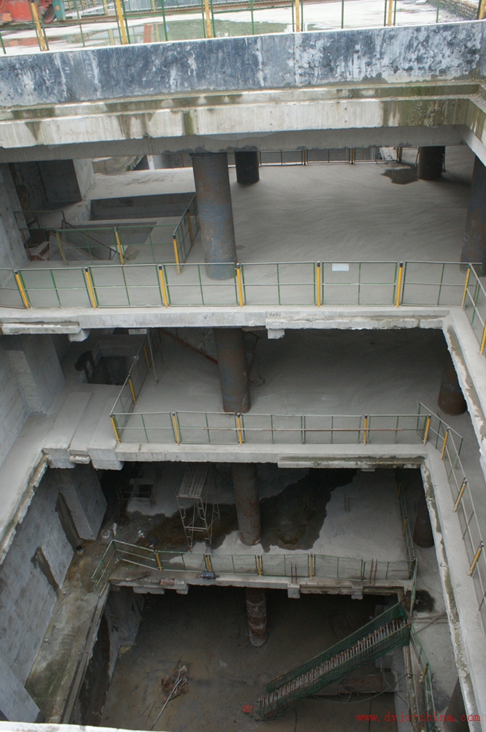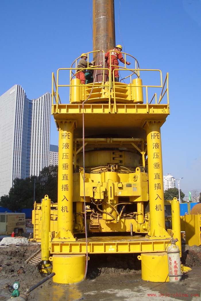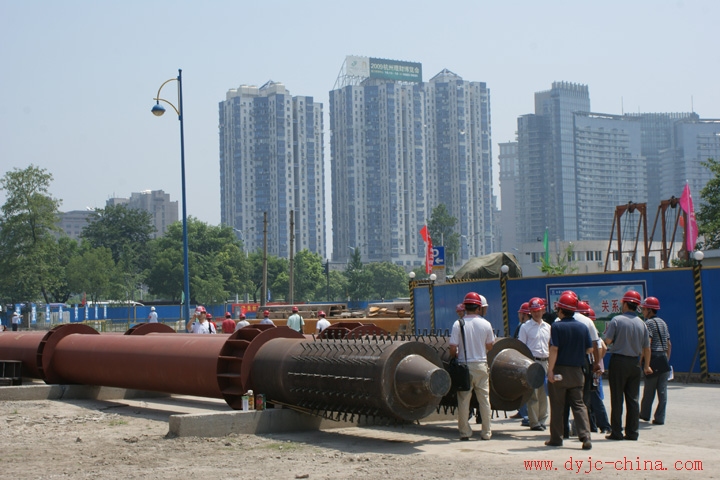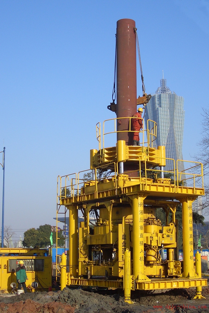 杭州地鐵1號(hào)線武林廣場(chǎng)站工程緊鄰浙江省博物館、杭州大廈繁華地段,如采用基坑大開(kāi)挖工藝時(shí)間特別長(zhǎng),為了緩解城市道路交通壓力施工采用蓋挖逆作法,并采用我公司HPE液壓垂直插入鋼管柱施工工法一次性將永久性鋼管柱插入。該車(chē)站為地下三層和四層多跨框架結(jié)構(gòu),采用AM工法擴(kuò)底鉆孔灌注樁基礎(chǔ),灌注樁上部安裝鋼管混凝土柱作為施工階段的豎向支撐結(jié)構(gòu),擴(kuò)底鉆孔灌注樁兼作使用階段的抗拔樁,由于本工程采用蓋挖逆作法,基坑深度深,柱間跨度大等特點(diǎn),施工難度大。本工程AM樁共170根,樁徑Φ1600擴(kuò)至2200mm、2800mm,其中HPE液壓垂直插入鋼管柱72根,鋼管柱直徑Φ900mm,壁厚16mm,鋼管柱長(zhǎng)度25.85~28.5m,柱頂在地面以下3~5m。