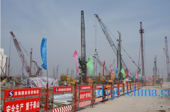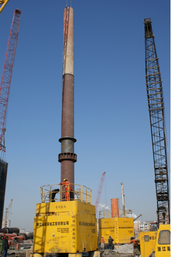 于家堡站大型交通樞紐配套市政公用工程位于京津城際延伸線于家堡站站房的兩側(cè),占地面積約10萬平方米,總建筑面積約19萬平方米,基坑超大超深,最深達31米,地下工程總投資約79億。其東側(cè)依次為地鐵B1線站廳公共區(qū)、出租車停車場及設(shè)備管理用房區(qū),其西側(cè)主要為公共換乘大廳、地鐵B2\Z1兩線站廳層公共區(qū)(付費區(qū))、地下商業(yè)區(qū)及設(shè)備管理用房區(qū)等。本標(biāo)段施工社會停車場/Z1線,所有樁基及永久性鋼管柱均由我公司負責(zé)施工,2200mm大直徑鉆孔灌注樁總樁數(shù)234根,其中AM擴底鉆孔灌注樁193根,樁徑2200mm擴3200mm、2400mm擴3800mm,Φ1000~1400永久性鋼管柱158根,樁基成孔大部分采用進口大直徑大功率旋挖鉆機施工,有效保證了樁身垂直度,并采用具有國際領(lǐng)先水平的AM可視可控液壓擴孔工法進行擴孔施工,保證了擴底成孔的有效直徑,樁基施工完成即采用專利技術(shù)HPE液壓垂直插入施工工藝安裝永久性鋼管柱,省時省力,精度高。保證了整體工程質(zhì)量,得到了總包方及建設(shè)單位的高度贊揚。