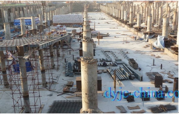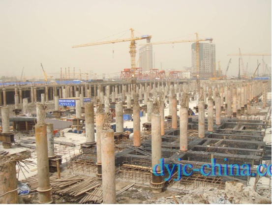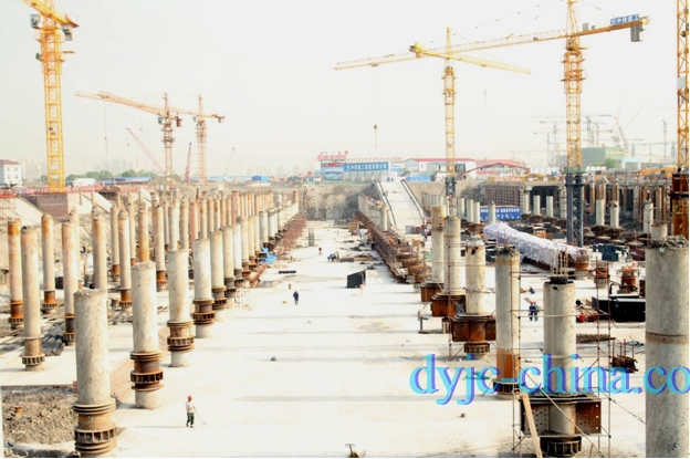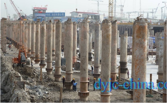 天津于家堡市政大型交通樞紐配套工程HPE液壓垂直插入鋼管柱垂直精度均小于L/500,最高精度達(dá)L/1200