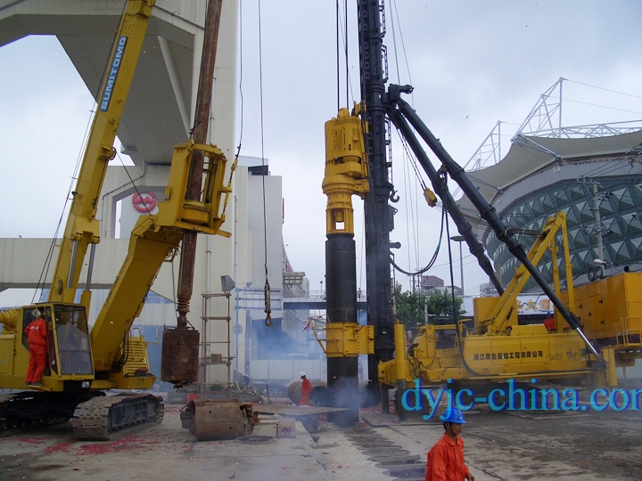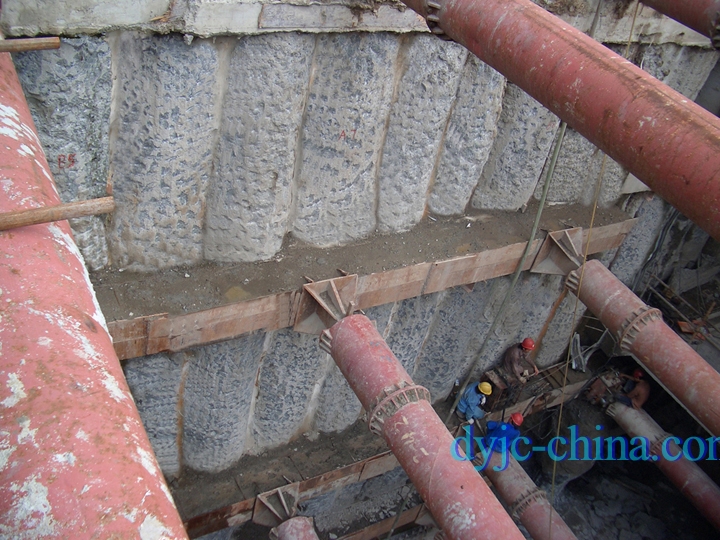 上海地鐵M8線虹口足球場車站地下圍護咬合樁,該項目是上海重點工程之一。該車站地下圍護給上海專家們出了個難題,由于車站地下圍護要在輕軌明珠線高架橋墩往下開挖 16m 深度的基坑圍護,圍護變形要求很高,且輕軌明珠線在橋上運行,橋墩緊靠此處。通過專家們多次研究和論證,決定采用進口 360度全回轉套管機來進行咬合樁施工。該圍護咬合樁施工開挖后順作區(qū)外移 30mm,逆作區(qū)外移10mm,質量高,整體完美,達到設計要求,得到專家好評,并為咬合樁在上海地區(qū)高難度圍護基坑施工中立了科題。
