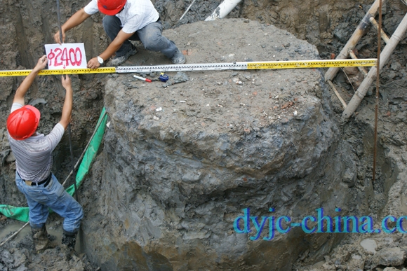 上一個大直徑超級高壓旋噴在上海粘土層成樁效果