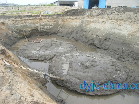RJP開挖情況,最大直徑達(dá)2400mmRJP超級高壓噴射工法施工現(xiàn)場