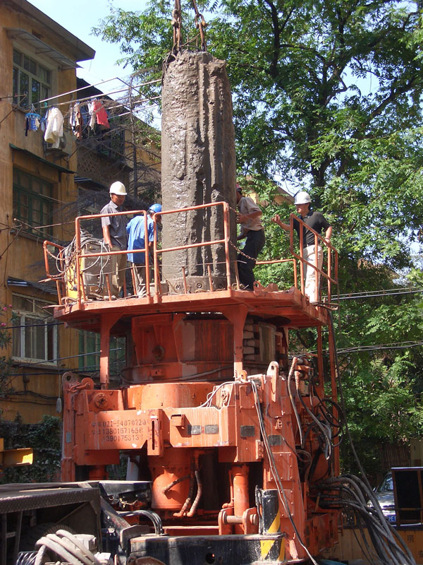 在場地復(fù)雜、狹小的居民區(qū)內(nèi)拔樁現(xiàn)場實景