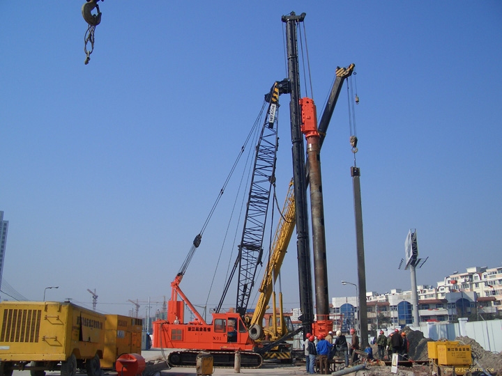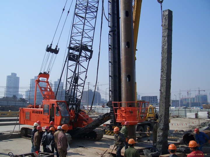 上海楊高南路軌道交通7號(hào)線拔樁工程施工現(xiàn)場實(shí)景
