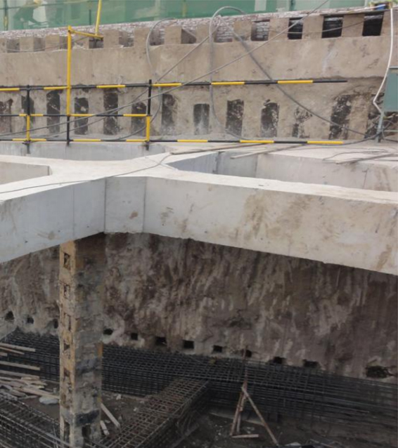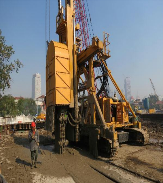 本項目為內(nèi)插H型鋼的兼具止水帷幕與受力圍護結構的TRD深層攪拌攪拌墻。墻深34.6米, 型鋼插入27米,成墻厚度為850mm,基坑開挖深度為17米