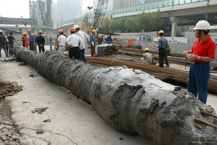 全回轉(zhuǎn)套管機拔出的舊灌注樁